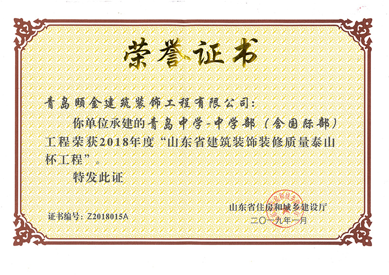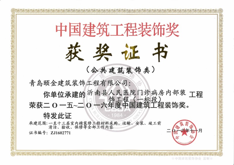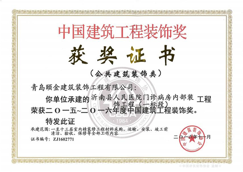 山東(dōng)省裝飾裝修工程質量泰山杯獎(jiǎng)