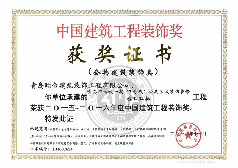 全國(guó)建築裝飾行業科技示範(fàn)工程獎