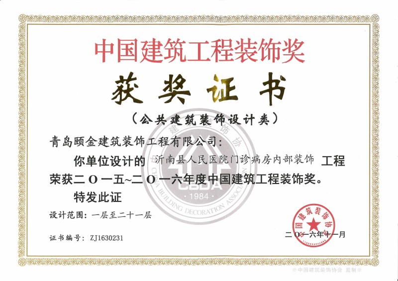 山東(dōng)省裝飾裝修工程質量泰山杯獎(jiǎng)