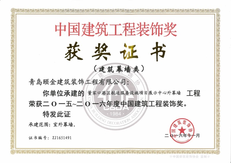 全國(guó)建築裝飾行業科技示範(fàn)工程獎